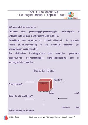 Scrivere è passione, arte, fantasia Ma può essere anche un mestiere e Vania Russo, editor professionista, conosce la strada che può portare ogni scrittore a diventare un maestro della scrittura Il "Manuale di scrittura creativa con esempi, esercizi e approfondimenti", edito da Panda Edizioni di Castelfranco Veneto. Vengono di seguito riportati alcuni esempi di SCRITTURA CREATIVA prodotti dai bambini e dalle bambine delle classi terze, quarte e quinte del nostro circolo Progetto scrittura creativa Direzione Didattica 1° circolo di Cremona anno scolastico 08/09 3 2 LA STORIA ALFABETICA La storia è costruita legando tra loro frasi successive, in. Corso di Scrittura Creativa, Secondo livello (modalità online, a distanza) Durante il corso non ripeteremo quanto si può già trovare in manuali di scrittura o grammatiche ma utilizzeremo esempi, brani di opere classiche o recenti, approfondite e analizzate per comprenderne il valore, le scelte;.