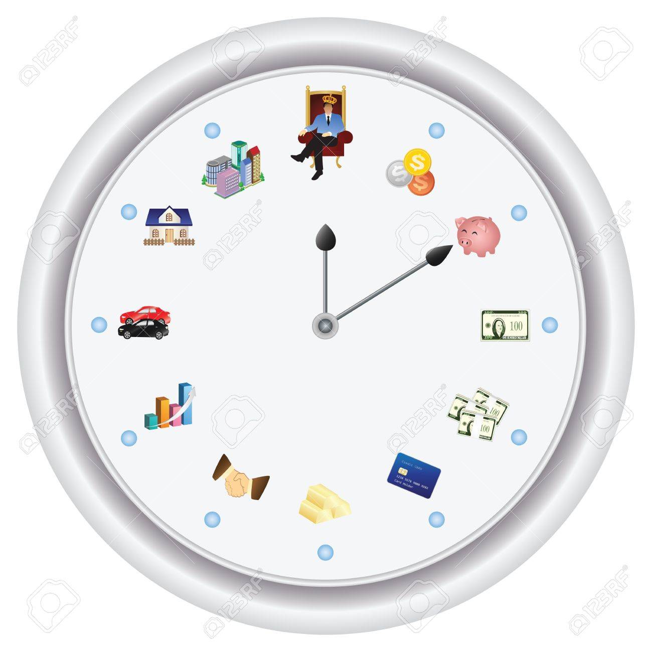 Vettoriale Il Tempo E Denaro Solo Vettore Nessun Effetto Bitmap La Mano Corta E Il Vostro Obiettivo La Mano Lunga E La Vostra Posizione Attuale Image