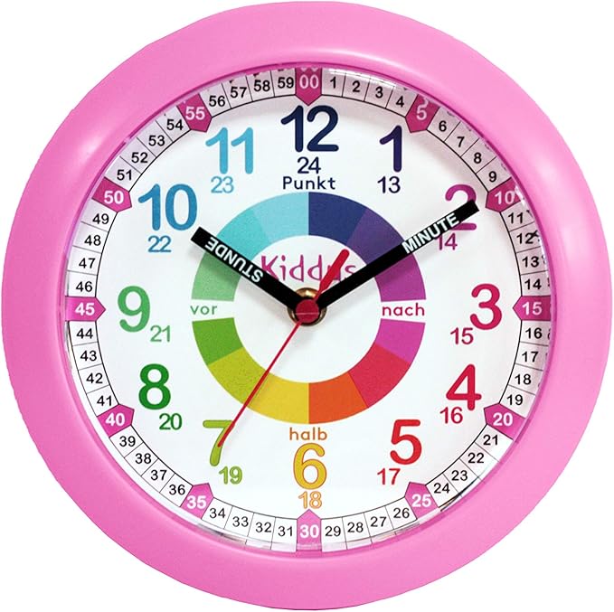 Kiddus Orologio Da Parete Didattico Per Bambini Ragazzi Analogico Con Esercizi Per Imparare A Leggere L Ora Facilita Di Lettura Movimento Al Quarzo Silenzioso Tedesco Rosa Amazon It Orologi