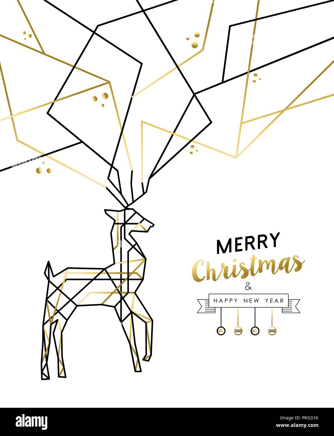 Merry Christmas Happy New Year Gold And White Deer In Outline Art Deco Style Ideal For Holiday Greeting Card Xmas Poster Or Web Eps10 Vector Stock Vector Image Art Alamy