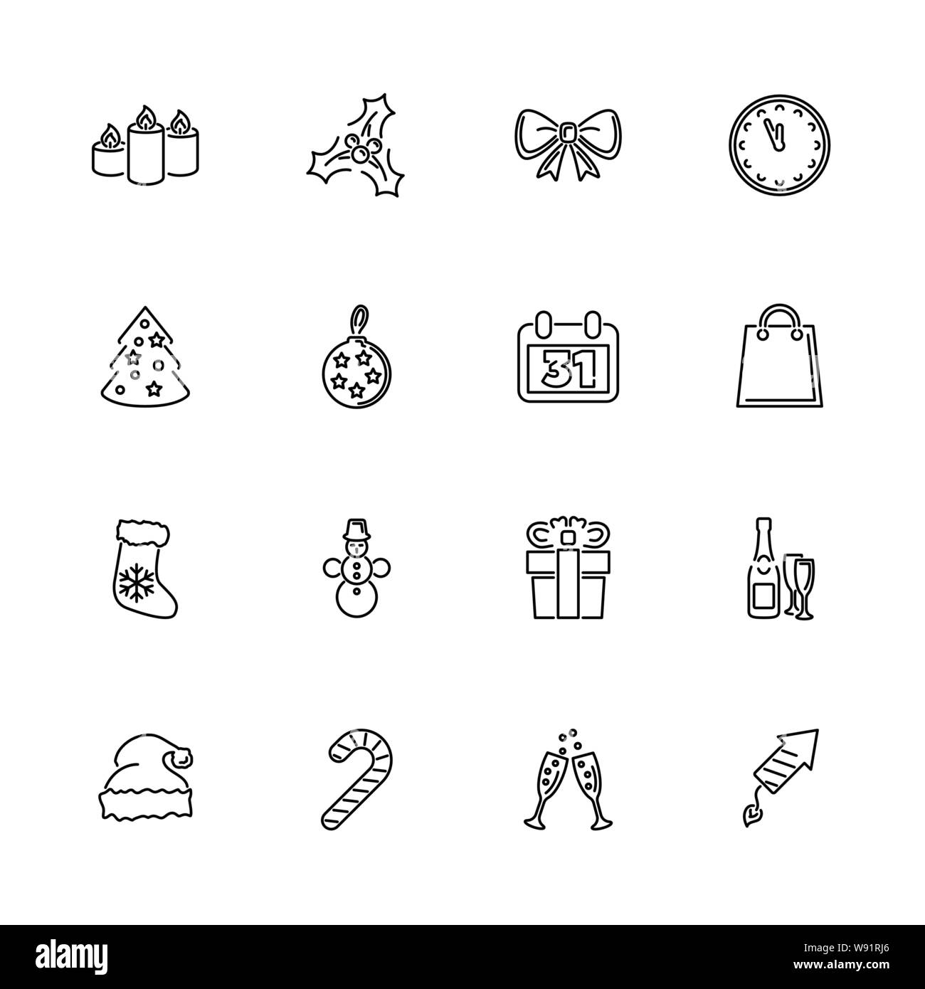 Merry Christmas And Happy New Year Outline Icons Set Black Symbol On White Background Simple Illustration Symbol Lined Simplicity Sign Merry Chris Stock Vector Image Art Alamy