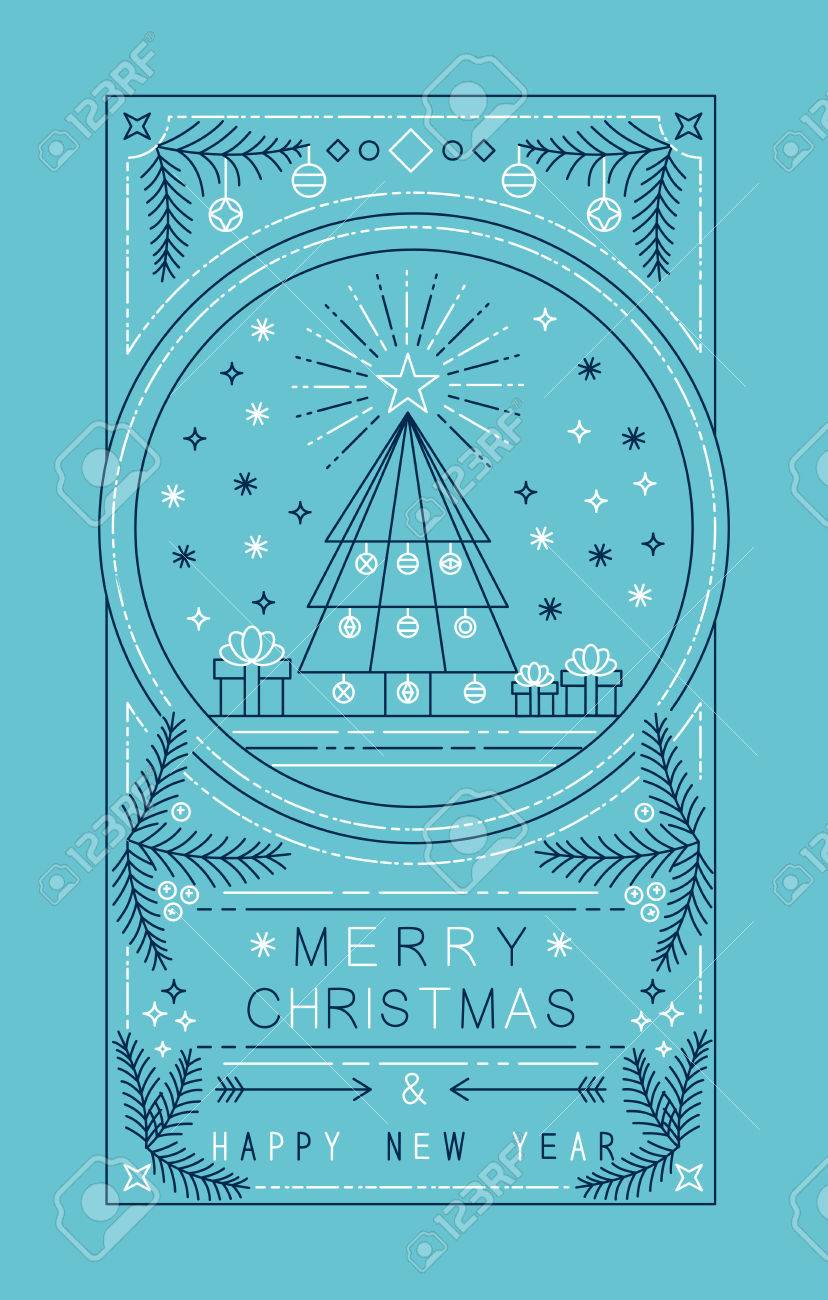 Merry Christmas And Happy New Year Greeting Card Holiday Outline Royalty Free Cliparts Vectors And Stock Illustration Image