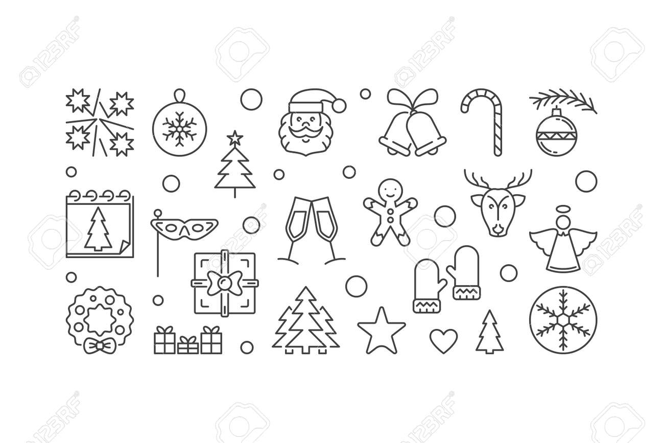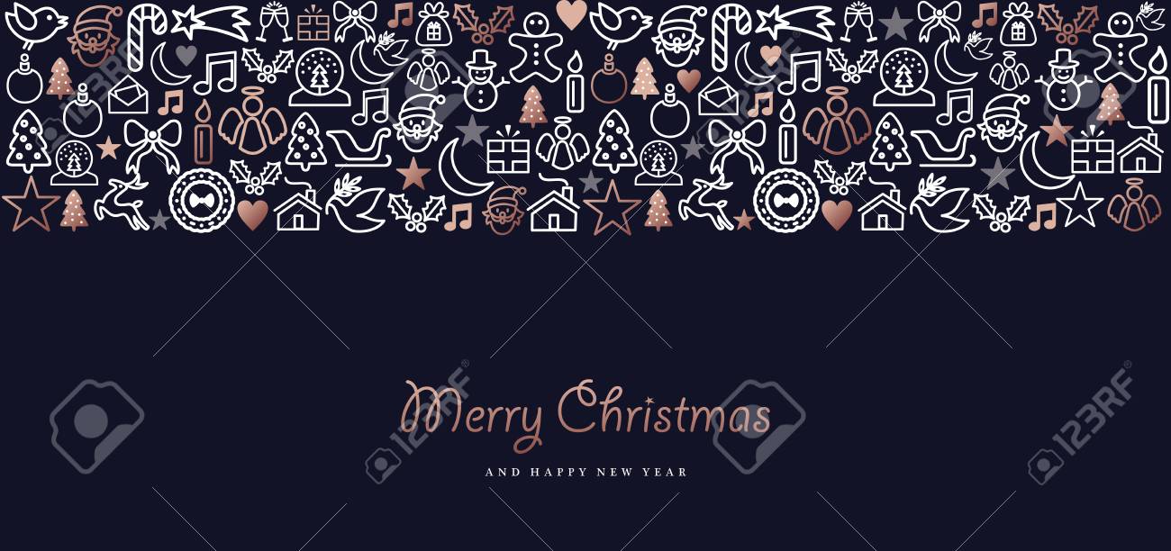 Christmas Greeting Card With Outline Icons Merry Christmas And Happy New Year Vector Background With Holiday Symbols Stock Vector Image Art Alamy