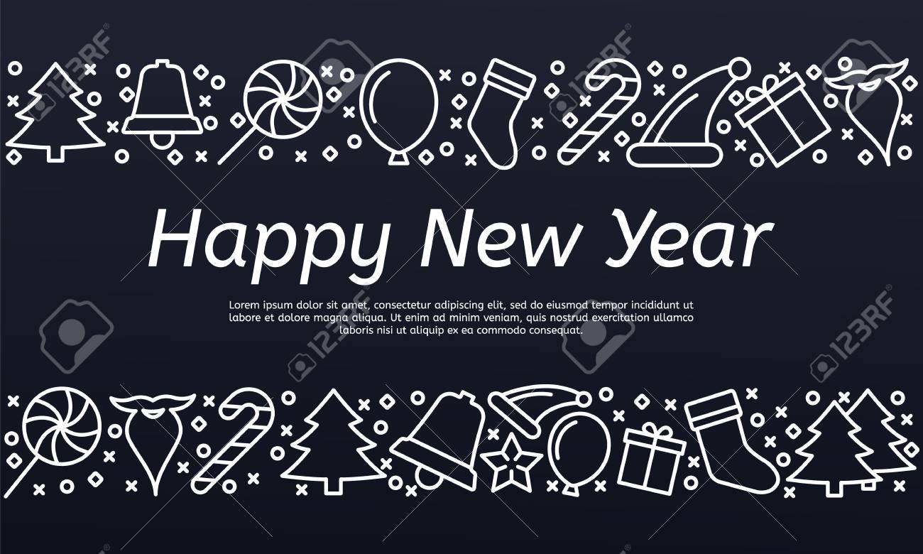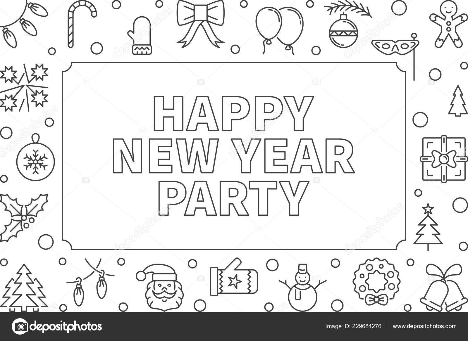 Happy New Year Party Outline Horizontal Frame Vector Christmas New Stock Vector C Sn3g