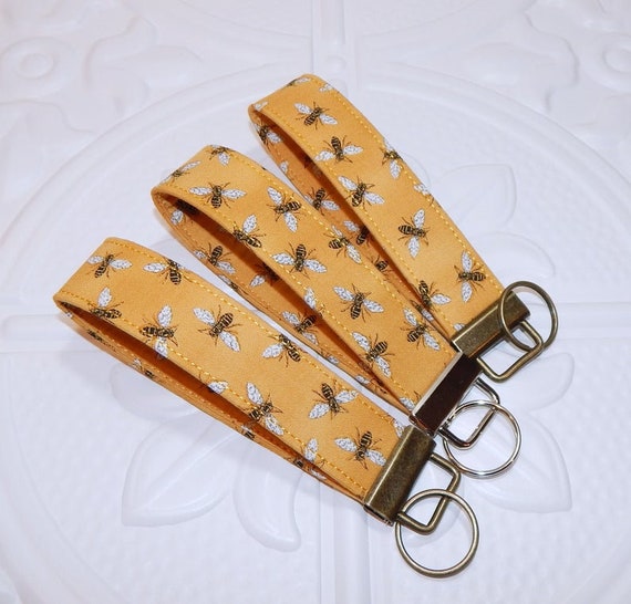 Bee Key Fob Cute Keychain Wrist Lanyard Wristlet Etsy