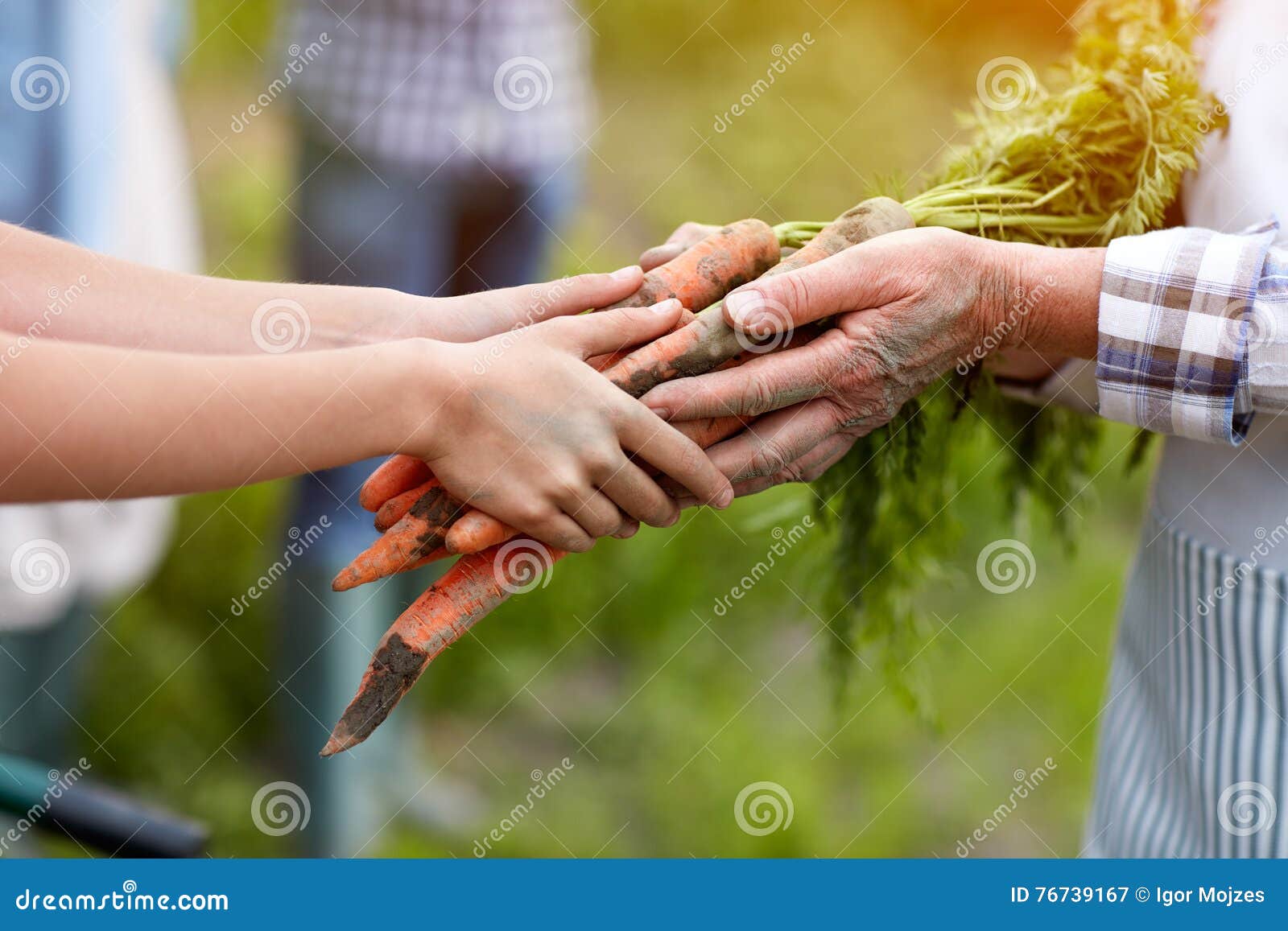 Chiuda Su Di Vecchie E Giovani Mani Con Le Carote Immagine Stock Immagine Di Naughty Mani