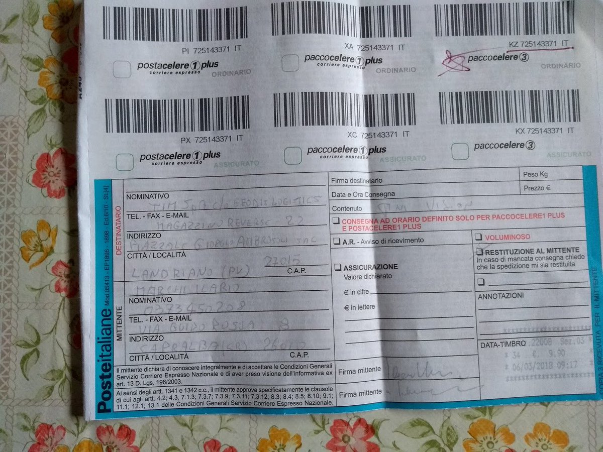 Ilario Marchi Timnewsroom Oggetto Restituzione Dec Tim Vison Prot C 1 Modulo Restituzione Prodotto 2 Ricevuta Di Spedizione Poste N Kz 3 Conferma Poste Consegna Pacco 4 Vs Lettera 13 4 18 T Co