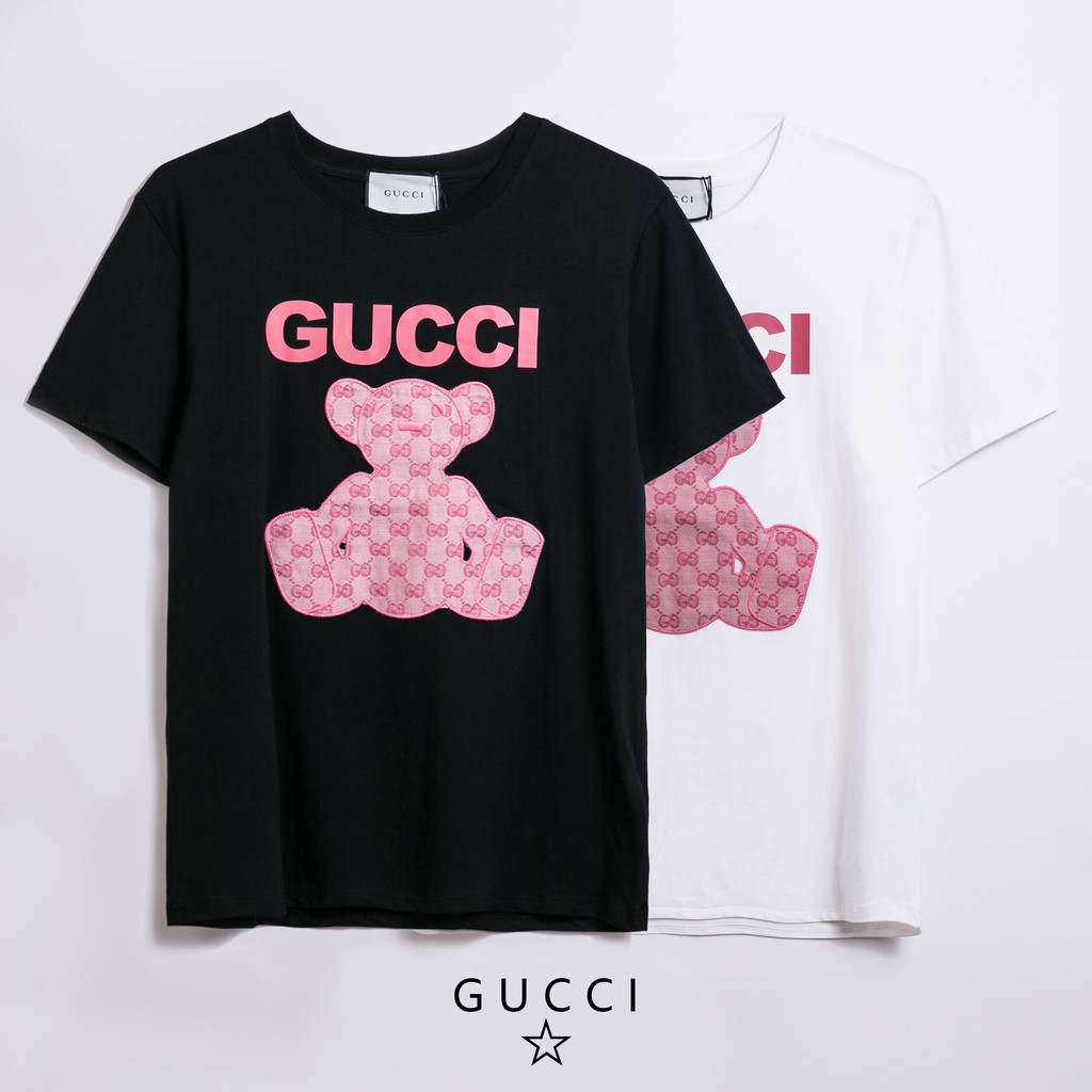 Fashion G Home Cotton Fabric T Shirt Cute Pink Embroidery Bear Logo Men And Women Short Sleeves Shopee Philippines