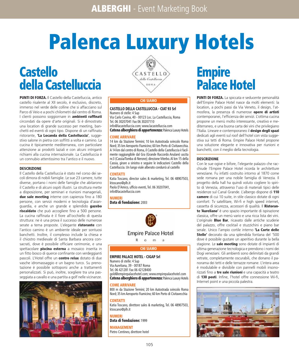 What does PLH stand for?. With 100 rooms and 10 suites, the first hotel facility of Palenca Luxury Hotels is accommodated in a prestigious “ palace ” dating from the year 1870 in the vicinity of the famous Via Veneto • 02, Castello della Castelluccia Medieval castle in the middle of a park;. Palenca Luxury Hotels Empire Palace Hotel Castello della Castelluccia PUNTI DI FORZA Il Castello della Castelluccia, antico castello risalente al XII secolo, è esclusivo, discreto, immerso nel.