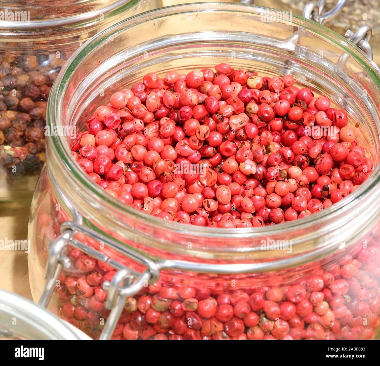 Grani Di Pepe Rosso Nel Vasetto Di Vetro Per La Vendita Foto Stock Alamy