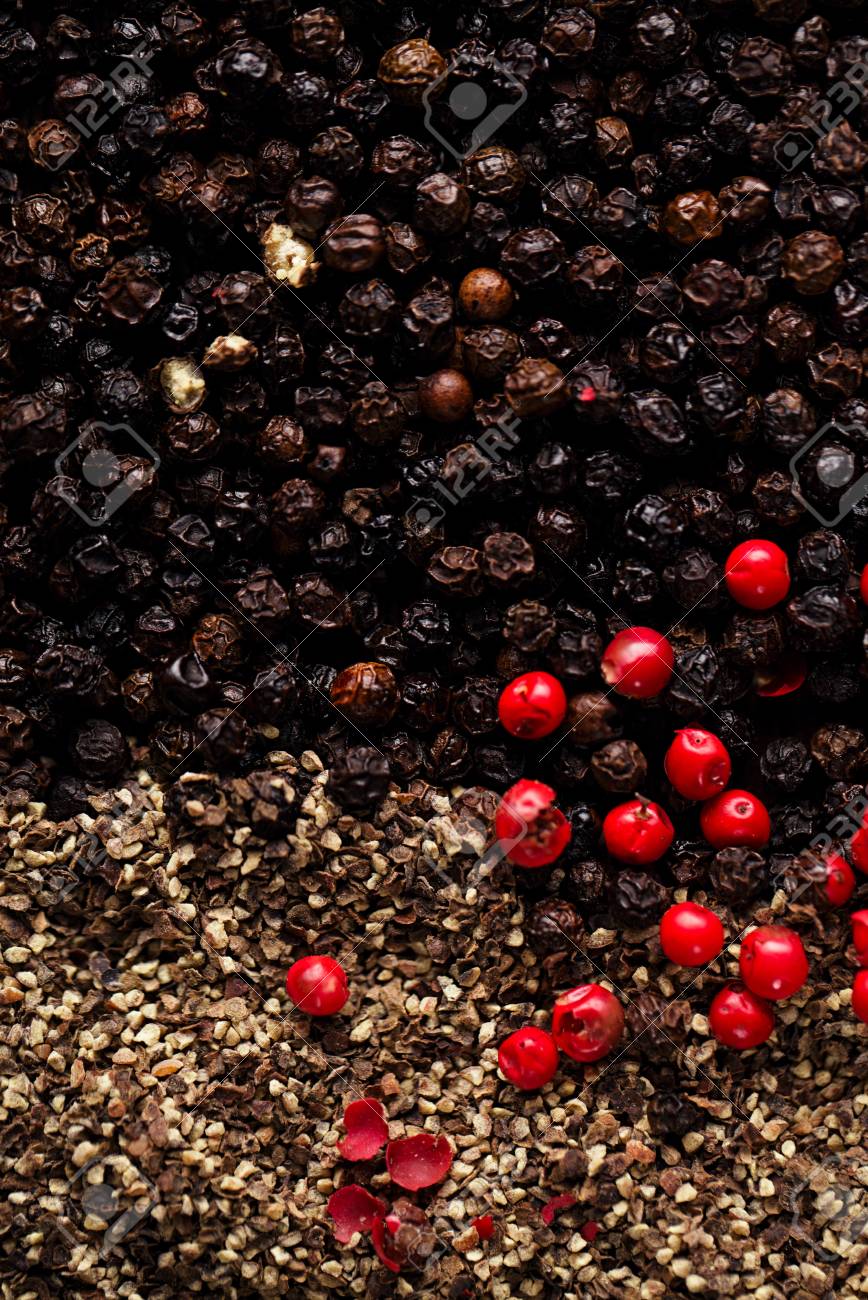 Grani Di Pepe Rosso E Semi Di Pepe Nero Foto Stock Alamy