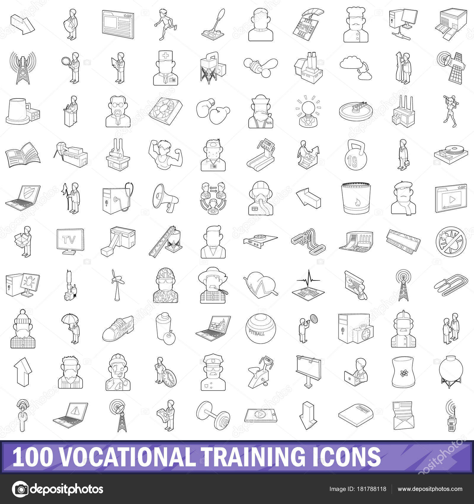 100 Vocational Training Icons Set Outline Style 100 Vocational Training Icons Set In Outline Style For Any Design Vector Canstock