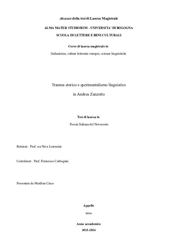 Pdf Marilina Ciaco Abstract Della Tesi Di Laurea Magistrale Trauma Storico E Sperimentalismo Linguistico In Andrea Zanzotto Marilina Ciaco Academia Edu