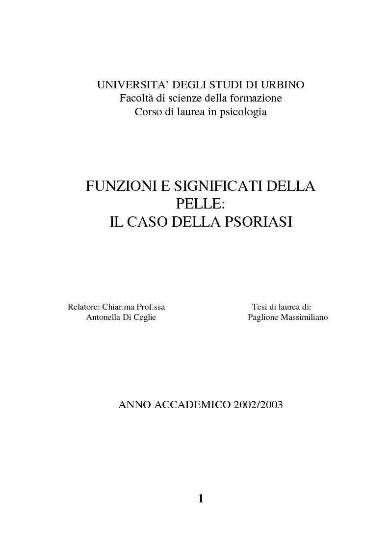 Funzioni E Significati Della Pelle Il Caso Della Psoriasi Anteprima Tesi Pagina 1 Di 10 Tesionline