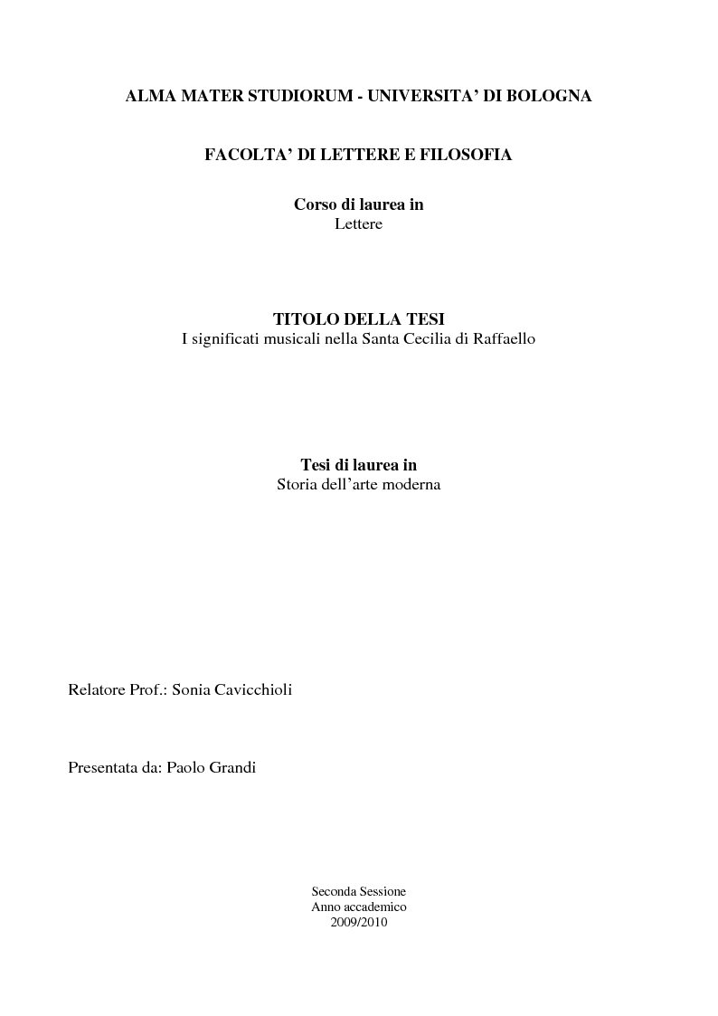 Alma Mater Studiorum Universita Di Bologna Facolta Di Lettere E Filosofia Corso Di Laurea In Lettere Titolo Della Tesi I Significati Musicali Nella Santa Cecilia Di Raffaello Tesi Di