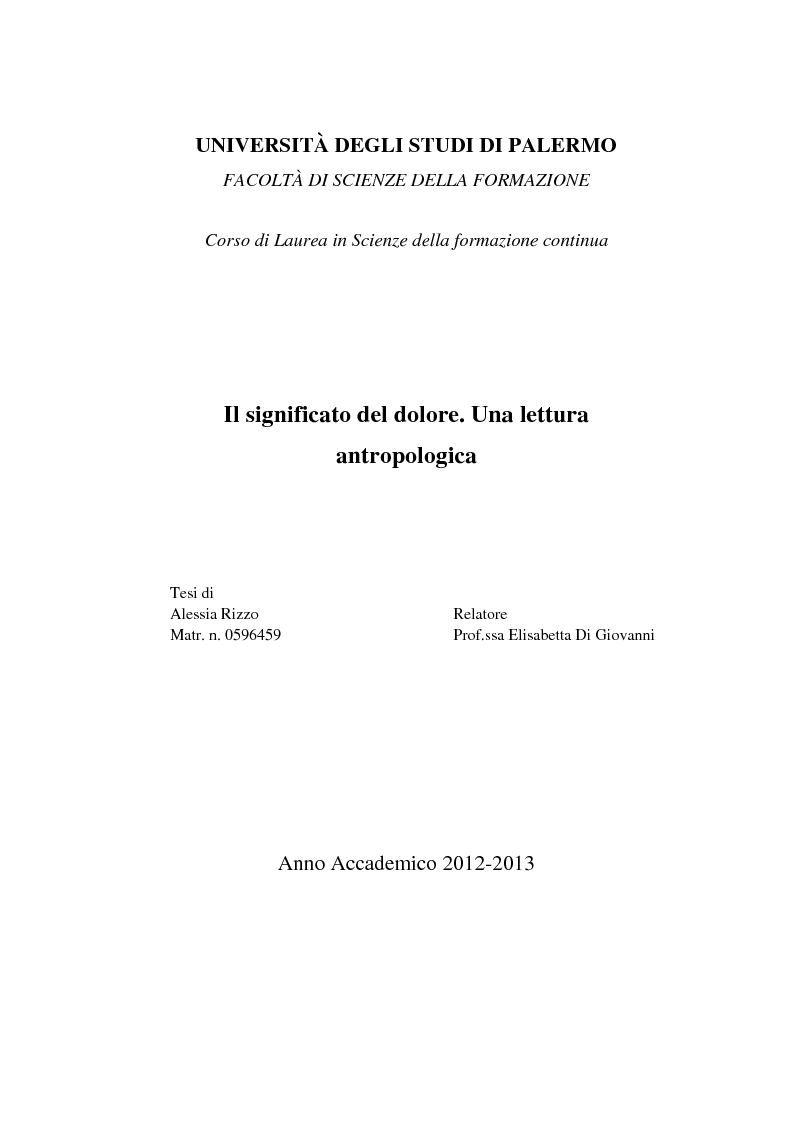Una Lettura Antropologica Tesi Di Alessia Rizzo Relatore Matr Tesionline