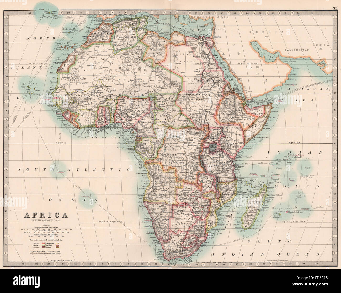 Africa Coloniale Inglese Francese Tedesco Spagnolo Portoghese C Johnston 1906 Mappa Foto Stock Alamy