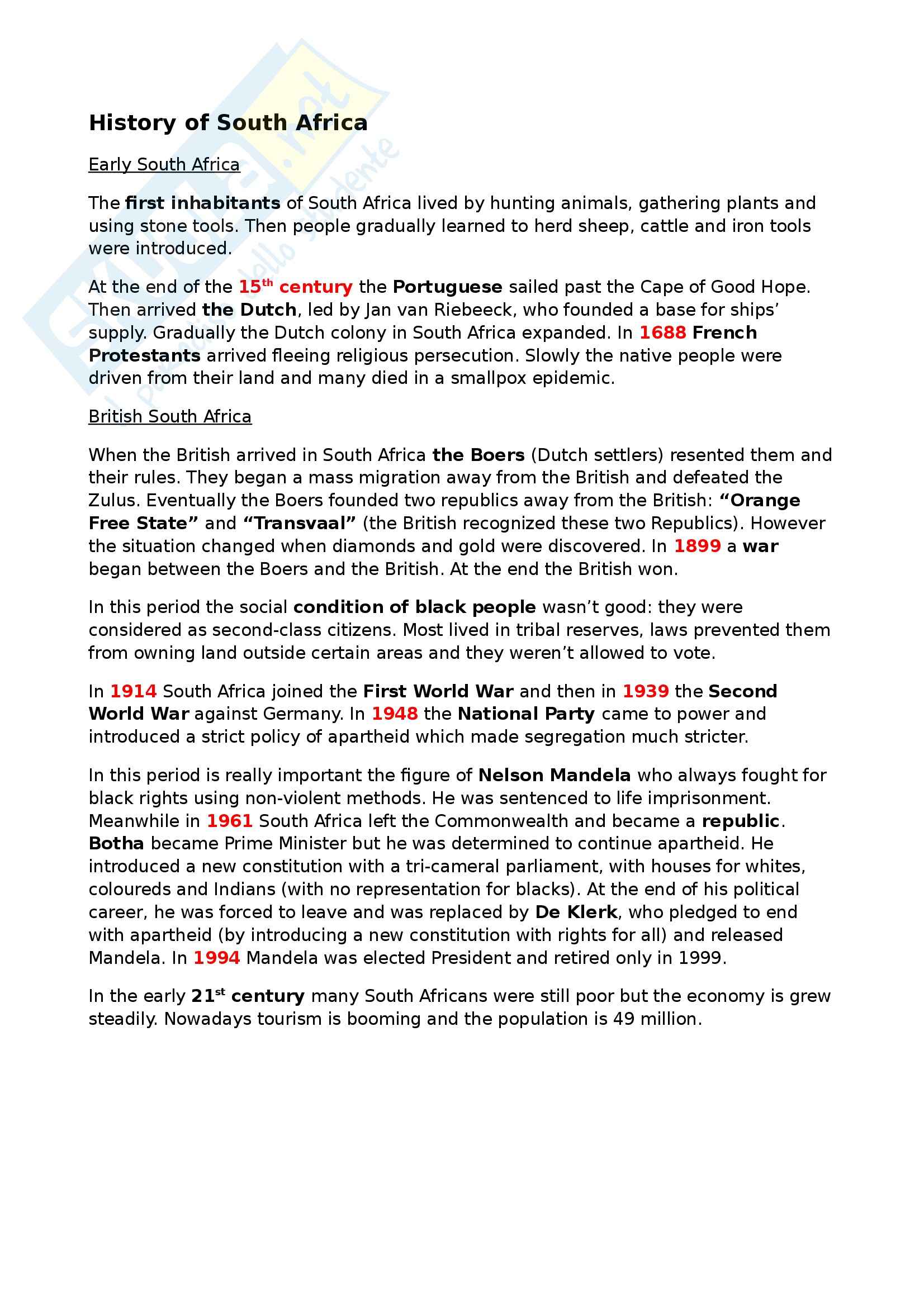 Approfondimento In Inglese Sul Sudafrica Docsity