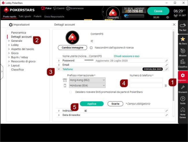 Pokerstars Modifica Numero Di Telefono