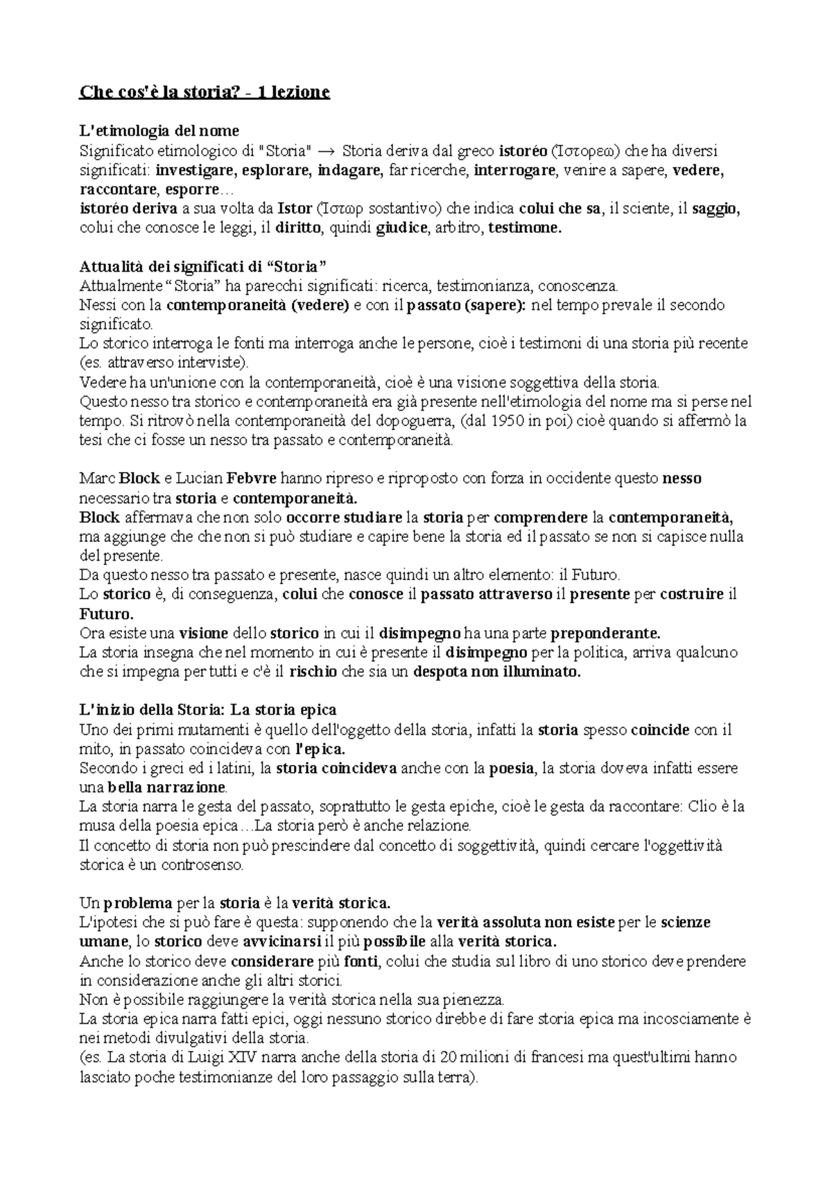 1 Che Cos E La Storia Appunti Integrati Con Le Slide Del Prof Repetti Che Cos La Storia Lezione Etimologia Del Nome Significato Etimologico Di Quot Storia Studocu
