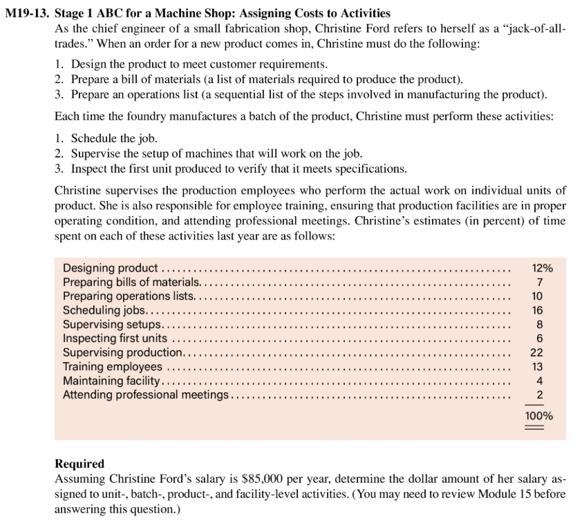 Solved M19 13 Stage 1 Abc For A Machine Shop Assigning Chegg Com
