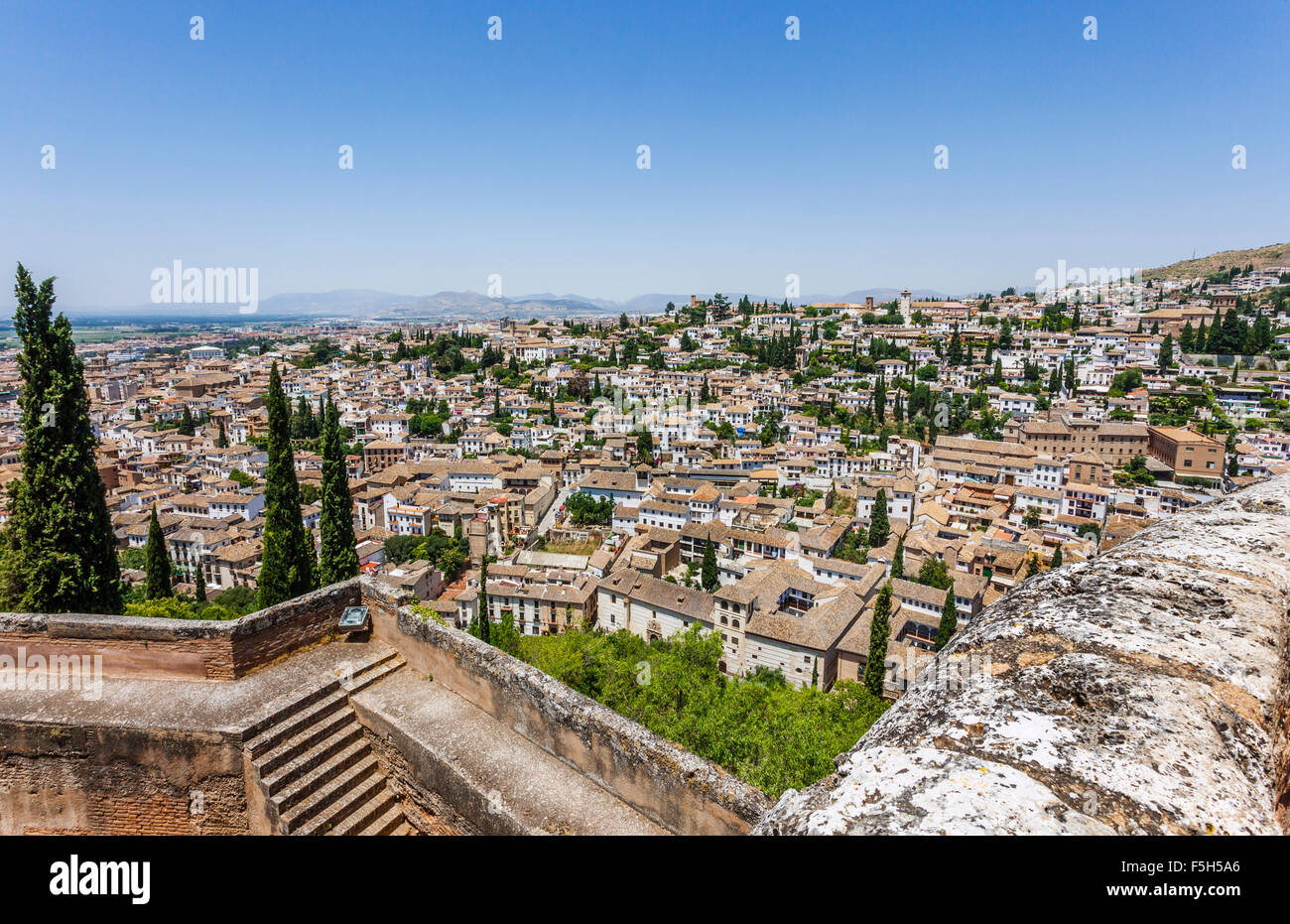 Spagna Andalusia Provincia Di Granada Vista Di Granada Da Merlature Della Alcazaba A La Alhambra De Granada Foto Stock Alamy