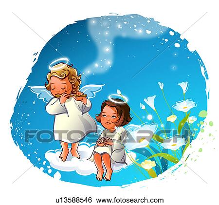 Due Angeli Seduta Su Il Nubi Archivio Illustrazioni U Fotosearch