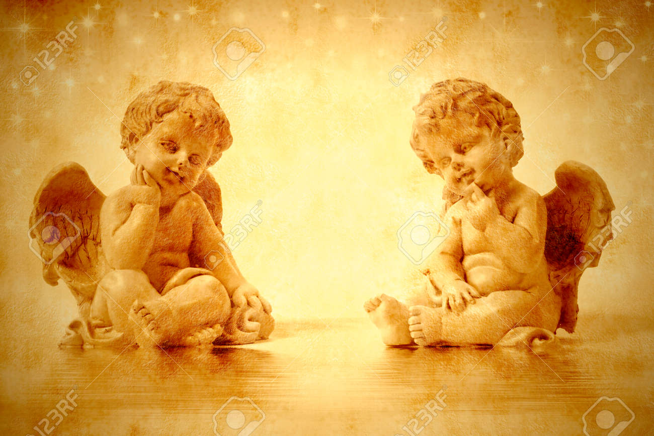 Immagini Stock Due Angeli Carino Seduto In Tonalita Seppia Image