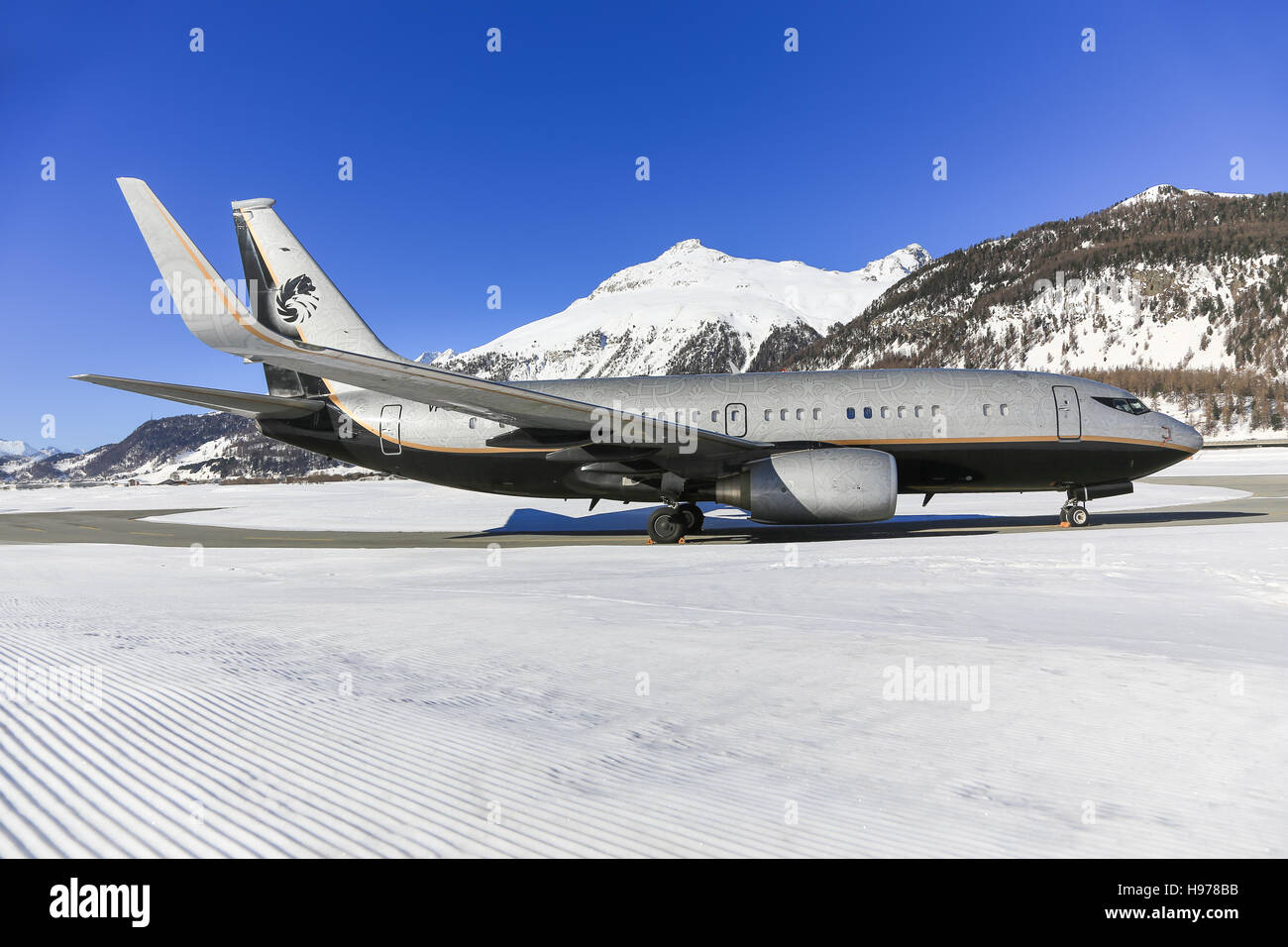 Samedanswitzerladboeing 7377bc j Vpbrt Engadin Airport Stock Photo Edit Now