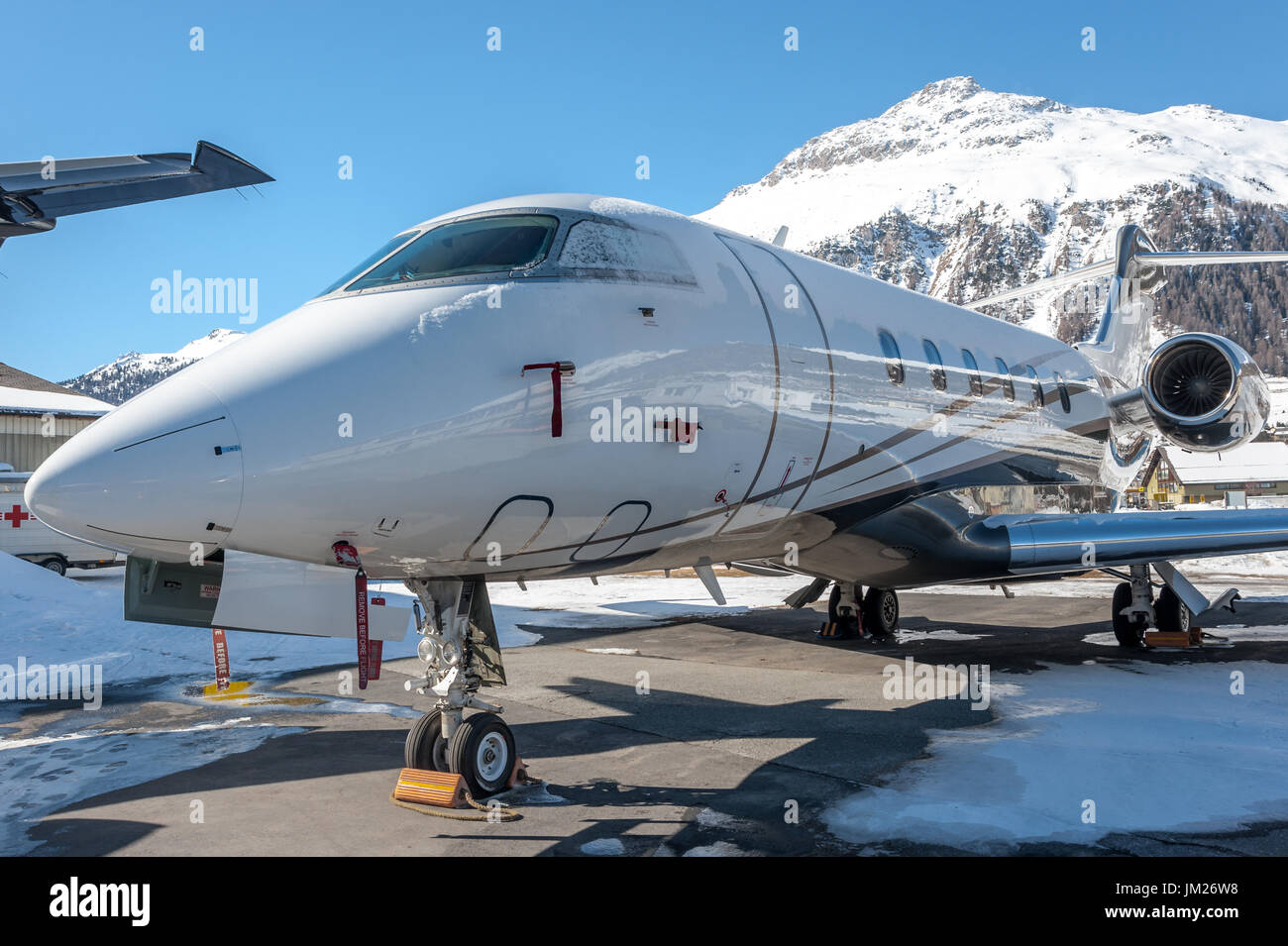 Bizjet Challenger 350 Parked At Samedan Engadin Airport Covered By Stock Photo Alamy