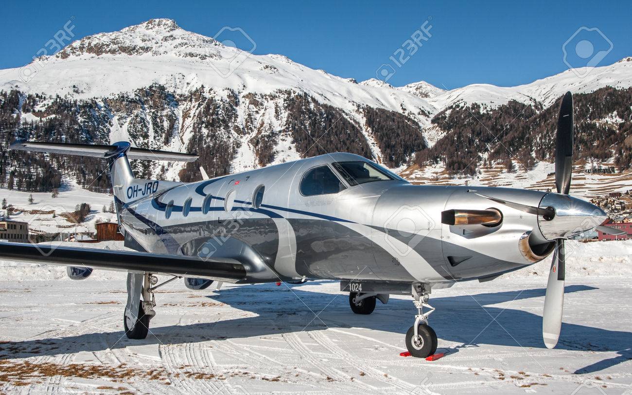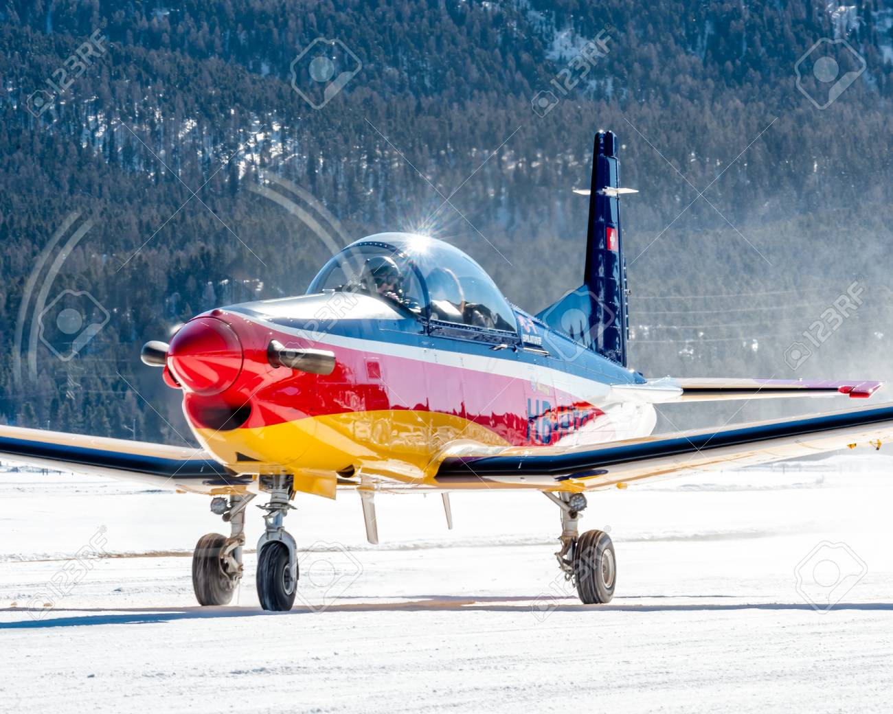 Samedanswitzerlad Private Pc7 Engadin Airport Samedanswitzerland Stock Photo Edit Now