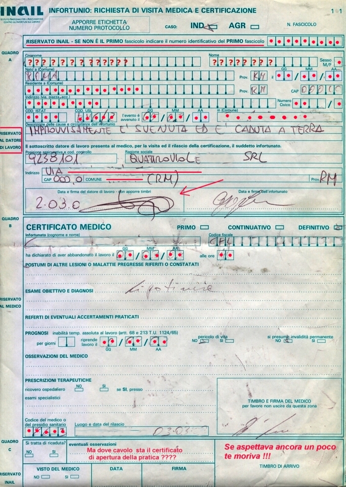 La mia pratica inail. E poi per la mia età 45 anni il 10% dovrebbero essere invece loro mi vorrebbero dare 90 La buona pratica. Diminuite le denunce di infortunio sul lavoro e le patologie di origine professionale presentate all’INAIL da gennaio a novembre , aumentati i casi mortali Dalla lettura dei dati disponibili nella sezione “Open data” del sito dell’INAIL, una prima analisi dell’andamento degli infortuni sul lavoro e delle malattie professionali nel. Non esiste solo la visita a richiesta di cui all'art 41 coma 2 lett c Quasi sempre si dimentica la visita a richiesta di cui all'art 41 comma 1 lett b Non sono la stessa cosa quella del.