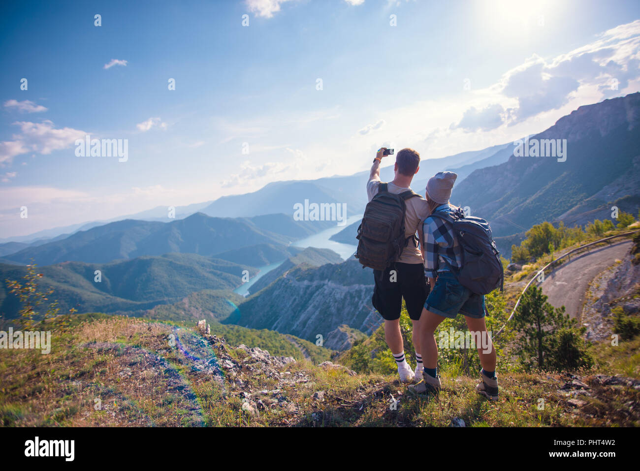 Respirando La Fresca Aria Di Montagna Coppia Giovane Rendendo Selfie Durante Le Escursioni In Montagna In Estate Concetto Di Escursioni In Montagna In Estate Foto Stock Alamy