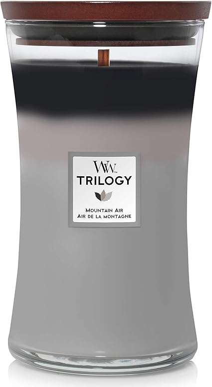 Woodwick Candela Profumata Hourglass Trilogy Con Stoppino Crepitante Aria Di Montagna Durata Della Fragranza Fino A 130 Ore Amazon It Casa E Cucina