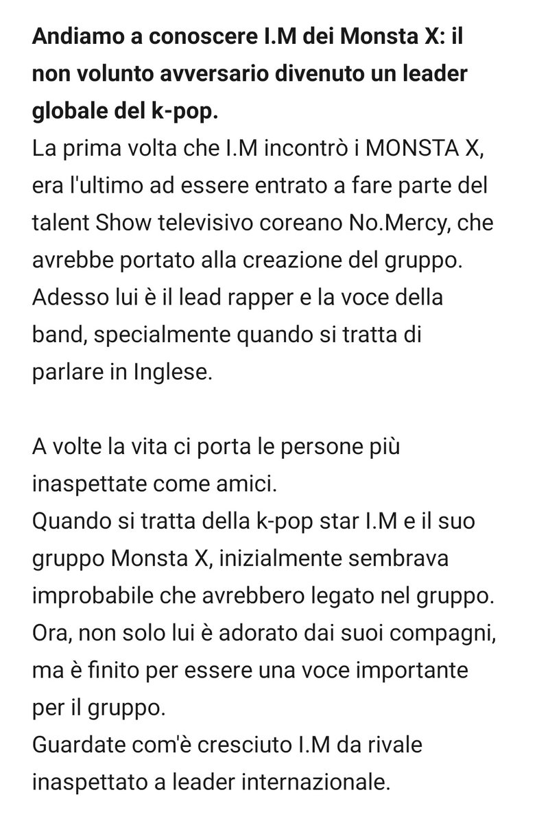 From Zero Italia Mx Wh على تويتر Traduzione Ita Andiamo A Conoscere I M Dei Monsta X Il Non Volunto Avversario Divenuto Un Leader Globale Del K Pop Link Articoli