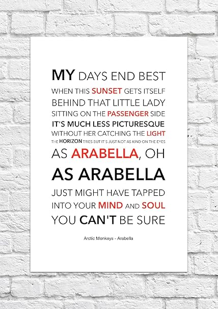 Poster Con Testo Tratto Dalla Canzone In Lingua Inglese Arabella Degli Artic Monkeys Stampa Senza Cornice Amazon It Casa E Cucina