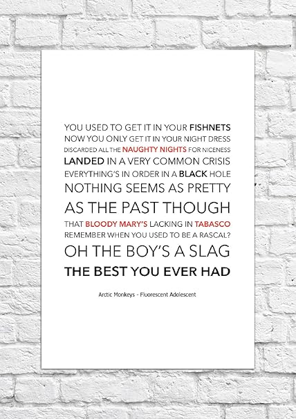 Poster Con Testo Tratto Dalla Canzone In Lingua Inglese Fluorescent Adolescent Degli Artic Monkeys Stampa Senza Cornice Amazon It Casa E Cucina