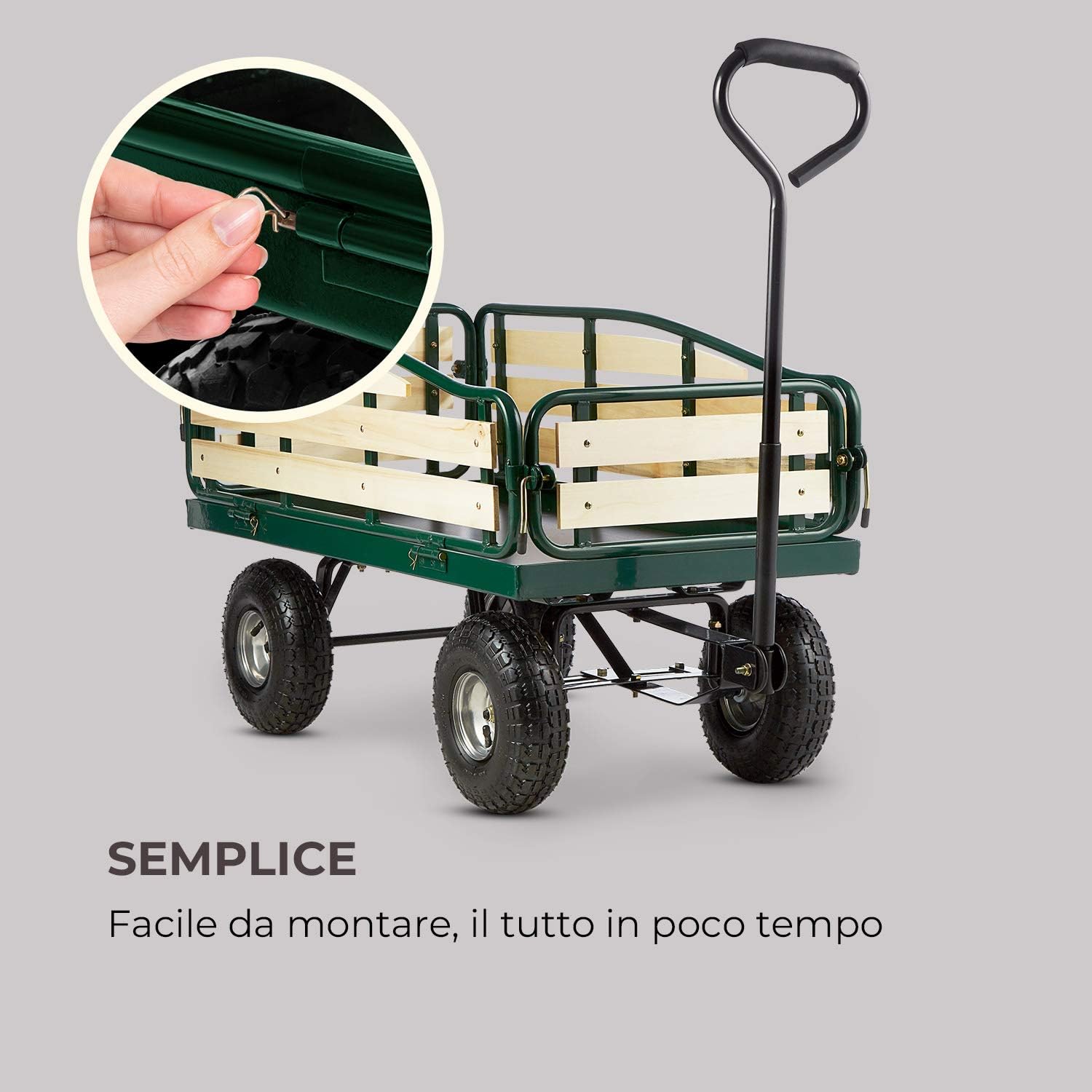 Carrello Da Giardino Con 4 Ruote Pneumatici Max 350kg 113 5x52x Cm Lati Rimovibili Colore A Scelta Carrello Da Spiaggia Carretto Da Trasporto A Mano Rimorchio Da Giardino