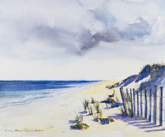 Beach Fence Cape Cod Beach Art Shore Painting Dune Grass Etsy