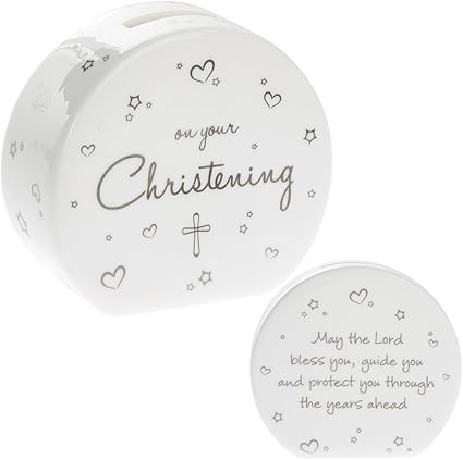 Salvadanaio Per Battesimo In Porcellana Fine Con Scritta In Inglese Christening Motivo Con Cuori E Stelle Amazon It Casa E Cucina