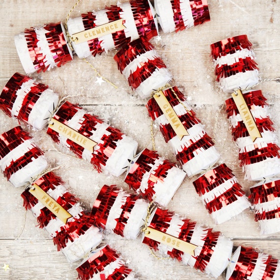 Fringed Christmas Crackers 6 Pack Red And White Etsy