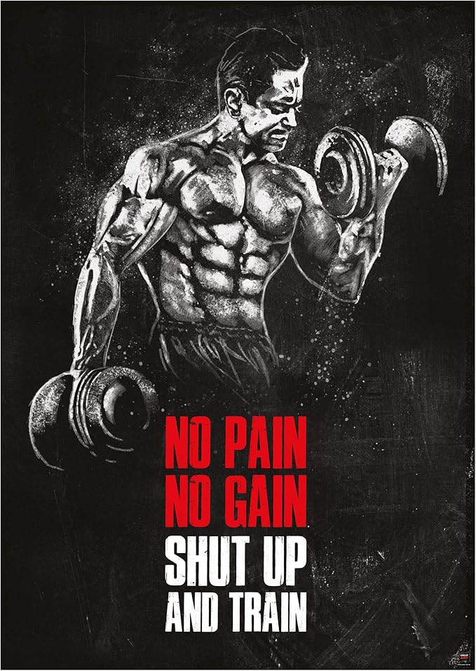 Amazon Com Great Art Motivational Workout Poster 23 4 X 16 5 In 59 4 X 42 Cm Wall And Fitness Poster Motivational Quotes Trainings Room Gym No Pain No Gain Shut Up And Train