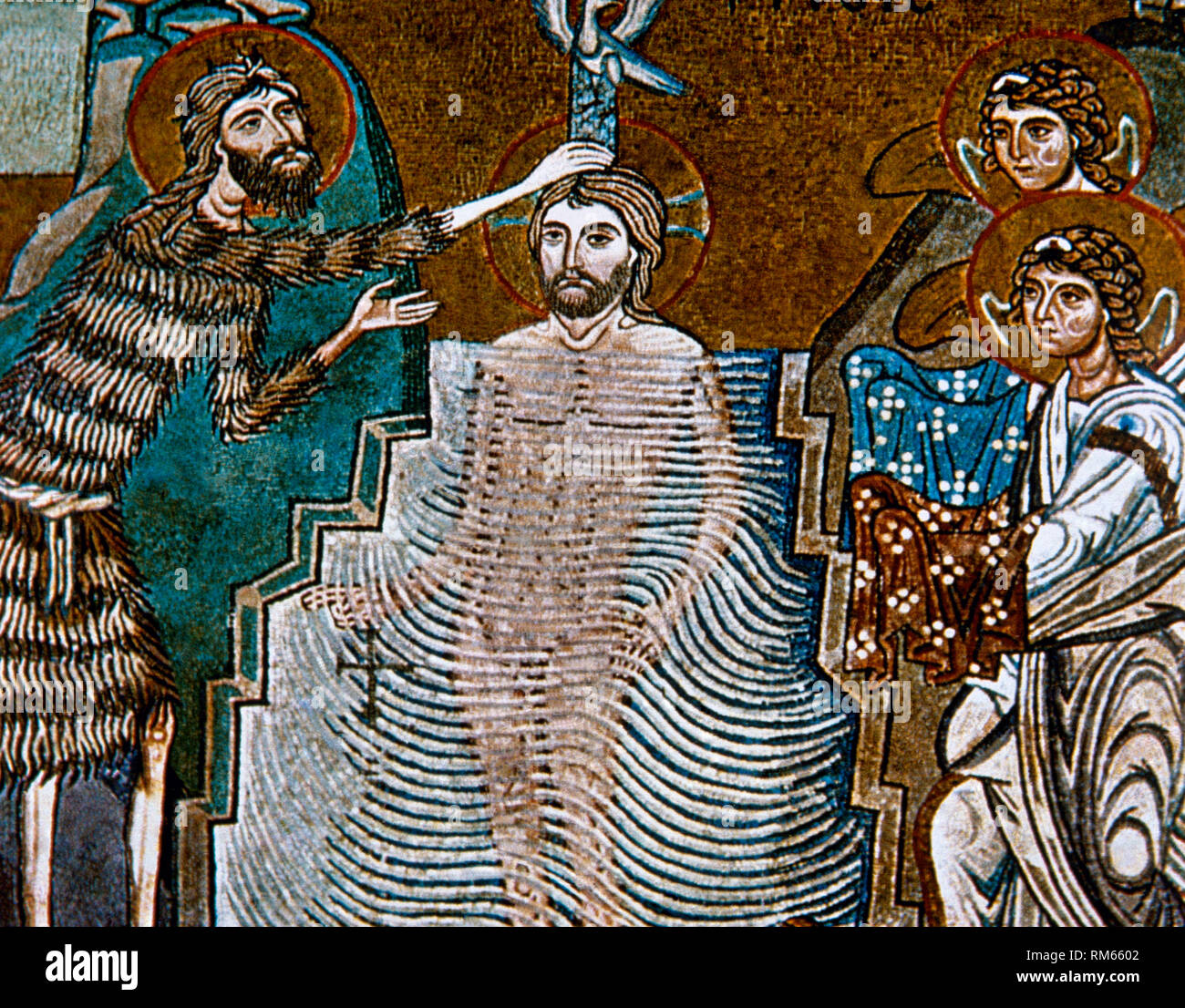 L Italia In Sicilia A Palermo Palazzo Dei Normanni Cappella Palatina La Cappella Reale Del Normanno Re Di Sicilia Mosaico Raffigurante Il Battesimo Di Gesu 1140 Arabo Normanne Stile Bizantino Foto Stock Alamy