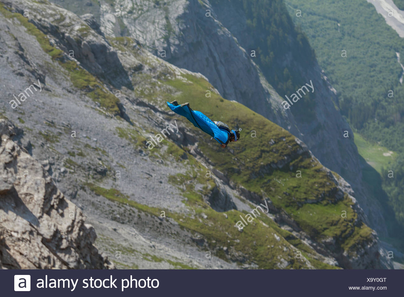 Una Tuta Alare Pilota Di Volare Nelle Alpi Svizzere Lauterbrunnen Svizzera Foto Stock Alamy