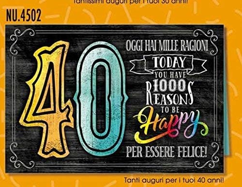 Ecco qui un biglietto d’auguri per i tuoi 40 anni Hai fatto così tanto nella tua vita, e pensare che hai appena iniziato Buon compleanno!. 25ott18 Auguri di Compleanno per festeggiare i 40 anni Visualizza altre idee su auguri di compleanno, 40 anni, compleanno. 25ott18 Bellissima carrellata di frasi di Auguri per i 40 anni Le frasi di auguri sono sia in formato testuale che in foto e immagini, da scrivere o condividere sui social che preferisci.