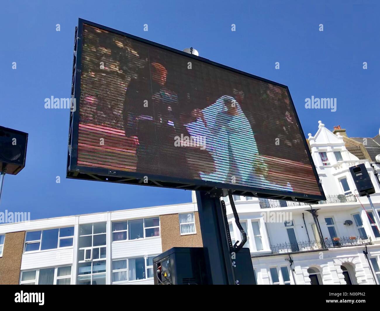 Uno Schermo Gigante Sul Lungomare A Bexhill Sul Mare In East Sussex Regno Unito Mostra Il Principe Harry E Meghan Markle S Royal Wedding Foto Stock Alamy