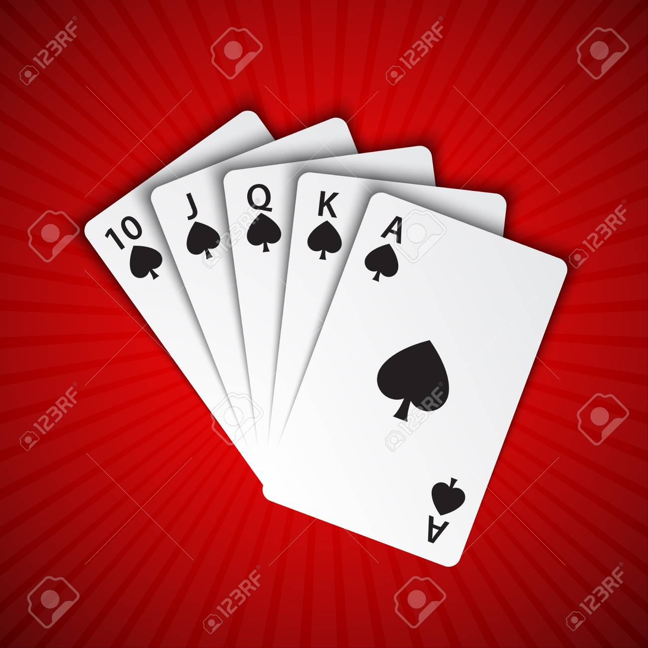 Vettoriale Una Scala Reale Di Picche Su Sfondo Rosso Mani Vincenti Di Carte Da Poker Carte Da Gioco Del Casino Image