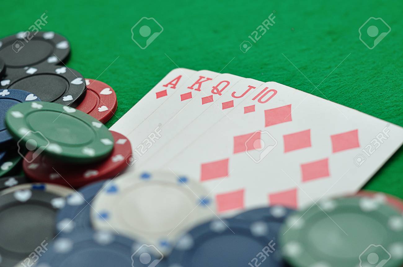 Immagini Stock Poker Chips Su Un Tavolo Da Poker Al Casino Avvicinamento Scala Reale Combinazione Vincente Vincitore Chips Image 6055