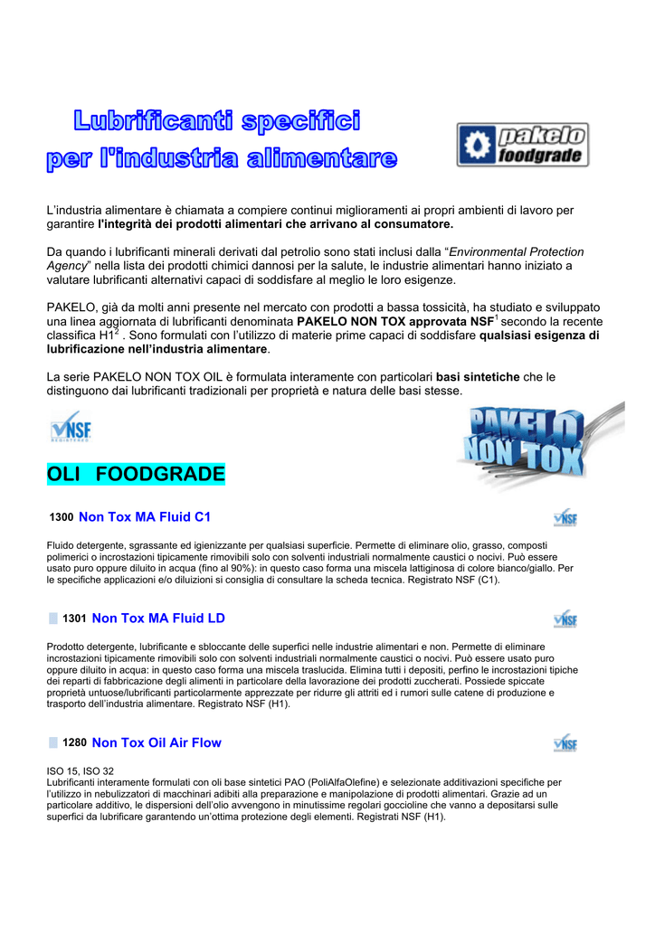 Lubrificanti Per L Industria Alimentare