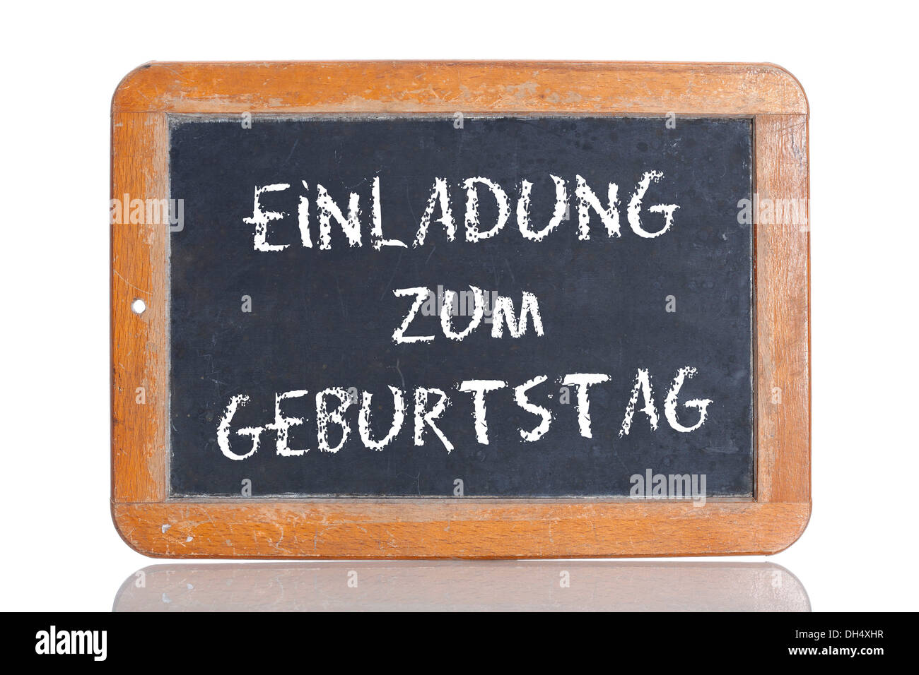 Vecchia Scuola Lavagna Con Le Parole Einladung Zum Geburtstag Tedesco Per L Invito A Una Festa Di Compleanno Foto Stock Alamy